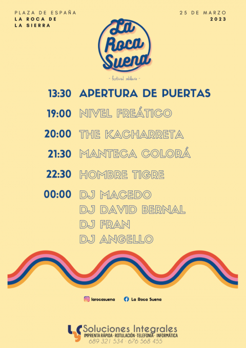 Este sábado 25 de marzo se celebra el festival solidario La Roca Suena, un evento que destinará el total de su recaudación a las familias afectadas por la riada sufrida el pasado mes de diciembre.