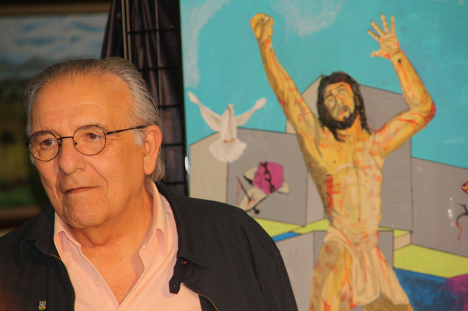 Una vez descubiertos los cuadros un cuadro donde el grafito y el pastel recreaban un parto, que podemos presuponer como el nacimiento de Jesús, pero que nada tiene que ver con las imágenes que la iconografía nos ha dejado, una mujer con manifiestas muestras de dolor era atendida por un hombre joven, ella sentada daba a luz a una criatura en un lugar inusual (establo) algunas imágenes de Jesús y María dieron paso a una resurrección, que más que resurrección era un grito de rebelión, un cristo que presentaba las heridas propias de la crucifixión y las marcas de los latigazos imagen que parece escapar de una cruz de estructura cúbica donde los clavos continúan clavados en ella, siendo uno de ellos sostén para una mariposa mientras en un hueco que ha abierto el otro clavo en la cruz aparece victoriosa una paloma. Un cuadro de la muerte, realizado íntegramente en grafito, nos presenta a un encapuchado sin rostro e ingrávido que eleva el cuerpo inerte de Jesús sustentándolo por las axilas.