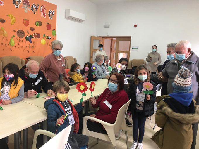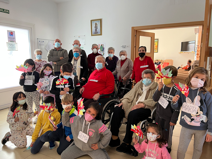 De esta manera, durante los meses que dura la actividad, todas las semanas se programan y realizan actividades conjuntas entre los niños y niñas de 1º de Primaria y los mayores que acuden a los centros de día: manualidades, cuidado de la salud, juegos populares, historia del pueblo y un largo etc. «Lo importante no es qué hacemos, sino cómo: juntos, con cariño, con alegría, con respeto. Creando vínculos entre los niños/as y los mayores», afirma Inmaculada.