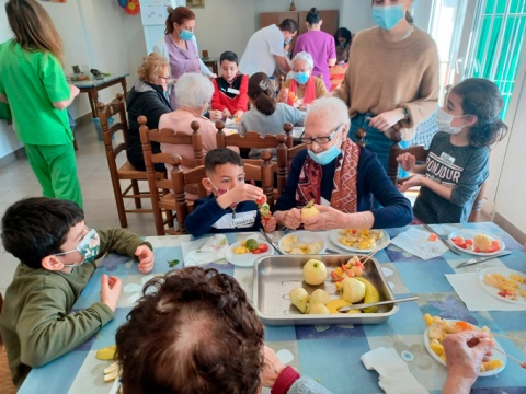 «El tiempo del encuentro semanal es un espacio en el que interactuar libremente y canalizar sus emociones con los niños y niñas, se sienten útiles pudiendo compartir con ellos sus conocimientos y experiencias y pudiendo ayudarles en determinadas actividades. Resulta también sorprendente para los mayores comprobar cuánto saben los niños de hoy, disfrutar de su alegría, y contagiarse de su vitalidad».
