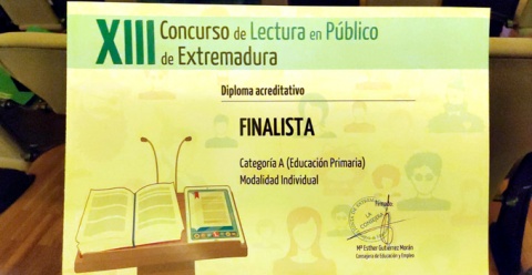 La montijana Gema Teodoro Lima, alumna del CEIP Príncipe de Asturias, ha participado en el XIII Concurso de Lectura en Público, cuya final se ha celebrado en la Biblioteca Pública Jesús Delgado Valhondo, de Mérida.