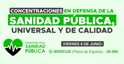 El movimiento “Extremadura por la Sanidad Pública” ha convocado nuevas concentraciones en ocho puntos de la región, donde el movimiento tiene presencia a través de otras plataformas ya constituidas que integran el mismo. Entre estos puntos de concentración acordados estará Montijo, que organiza la reivindicación el viernes 9 de junio a las 20:00 horas en la Plaza de España.