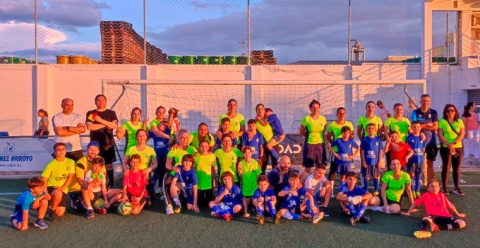Ataviadas con camisetas amarillas y pantalón negro ellas, ellos con su indumentaria azul, el encuentro empezaba a las 20:00 horas debido a las altas temperaturas.
