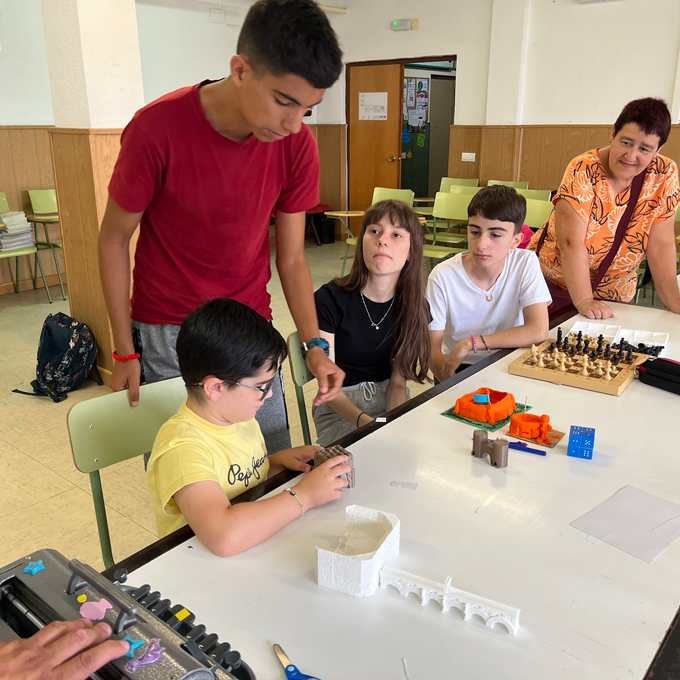"Con él, alumnos de Programación y Robótica de 3º ESO, vivimos un día muy especial y entrañable. Los alumnos le mostraron los monumentos extremeños recreados con una impresora 3D en este proyecto, entre ellos está El Arco de la estrella (Cáceres), el Teatro Romano (Mérida), el Arco de Caparra, el Castillo de Luna (Alburquerque), la Picota (Jaraíz), Puerta Palma (Badajoz)... Y Martín verificaba, valiéndose también del tacto, que se trataba de cada uno de ellos", indican desde el centro.