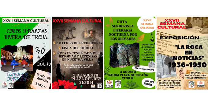 La Asociación Cultural Villa de Manzanete, de La Roca de la Sierra, organiza su XXVII Semana Cultural, un evento que cuenta con actividades de lo más diversas y variopintas que desde la asociación concentran en distintas jornadas diarias dedicas al Foklore, las tradiciones, el deporte, o la historia.