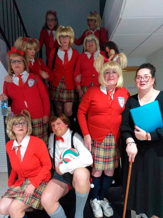Carnavalera hasta los huesos, pero eso fue una etapa de mi vida para recordar, en mi comparsa “Los Cojones” con mis amigas, vecinas y mi familia…duró 20 años. Me encantaba diseñar y coser los primeros bocetos del disfraz. En el 92 salimos en serio como comparsa, con los payasos boca abajo. Poniendo fantasía a personajes como: Toreros, moros, arlequines, diablos, mejicanos, brujas, Dios del agua, etc. Y cantábamos en el escenario de la plaza, revindicábamos y criticábamos todo lo del pueblo, las faltas y las sobras. Ahora, desde fuera, participo como espectadora y disfrutando de los desfiles de nuestro pueblo y del de Badajoz, que es el más grande de España…y allí estoy yo cogiendo sitio a las 7 de la mañana para disfrutar en primera fila con mi hija, mis nietas y mis amigas.