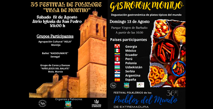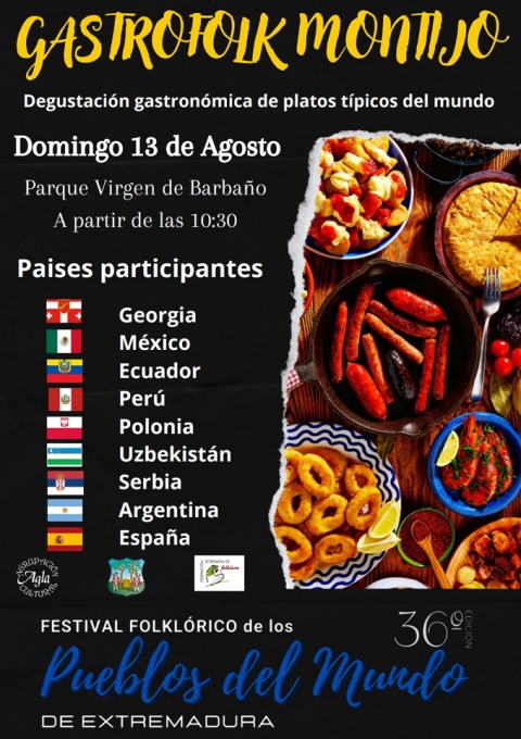 Será un fin de semana para disfrutar de la riqueza cultural no sólo de nuestra tierra, sino de otros puntos del planeta, ya que el domingo 13 de agosto se celebrará en Montijo, en el Parque Virgen de Barbaño, a partir de las 10:30 horas, Gastrofolk, un evento en el que se darán cita distintos grupos procedentes de Georgia, México, Ecuador, Perú, Plonia, Uzbekistán, Serbie y Argentina, y donde además de poder ver la riqueza de sus trajes típicos, se podrán realizar talleres y disfrutar de una degustación de la cocina de estos pueblos.