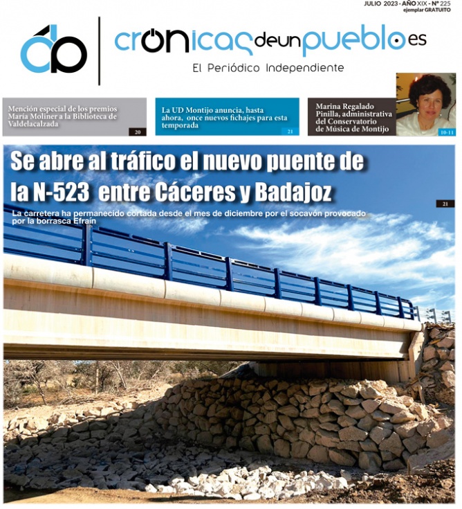La apertura al tráfico del nuevo puente de la N-523, que comunica las dos capitales de provincia de la región, y cuya carretera había permanecido cortada al tráfico desde el mes de diciembre tras el socavón provocado por la borrasca Efraín, es la foto principal que presenta la portada en este nuevo número. Con la apertura del puente se cerrará el desvío provisional para vehículos ligeros, incluidos los de transporte escolar, activado en enero.