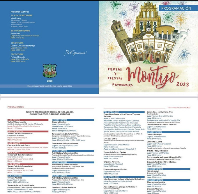 Las actividades que se anuncian en el programa de mano se inician desde el 16 de agosto hasta el 11 de septiembre, ya que se vienen realizando diferentes trofeos y actividades de algunas asociaciones durante los días de la segunda quincena de agosto.