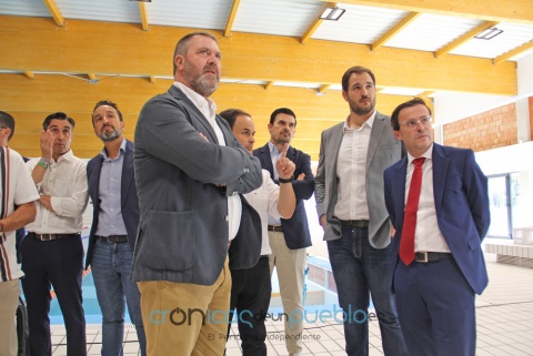 El presidente de la Diputación de Badajoz, Miguel Ángel Gallardo, y el dirctor general de Deprotes, Santi Amaro, han visitado junto al alcalde de Montijo, Javier Cienfuegos, la piscina climatizada de Montijo, una vez concluidas las obras para la mejora de su eficiencia energética, en un acto al que han acudido autoridades de distintas instituciones representando a las poblaciones de la comarca. Además, esta visita se ha aprovechado también para conocer el nuevo Punto de Encuentro Familiar que, como la piscina, se ha ejecutado en buena parte con los fondos EDUSI que gestiona la institución provincial.