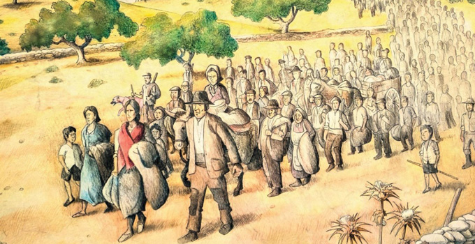 La muestra trata unos hechos ocurridos en septiembre de 1936, cuando miles de extremeños y extremeñas huyeron desde el suroeste de la provincia de Badajoz hasta Azuaga, intentando escapar de los territorios conquistados por los sublevados franquistas. Aunque varias miles lograron llegar a territorio republicano, cerca de dos mil de estas personas fueron detenidas al ser atacadas entre Reina y Fuente del Arco forzadas a buscar otra salida.