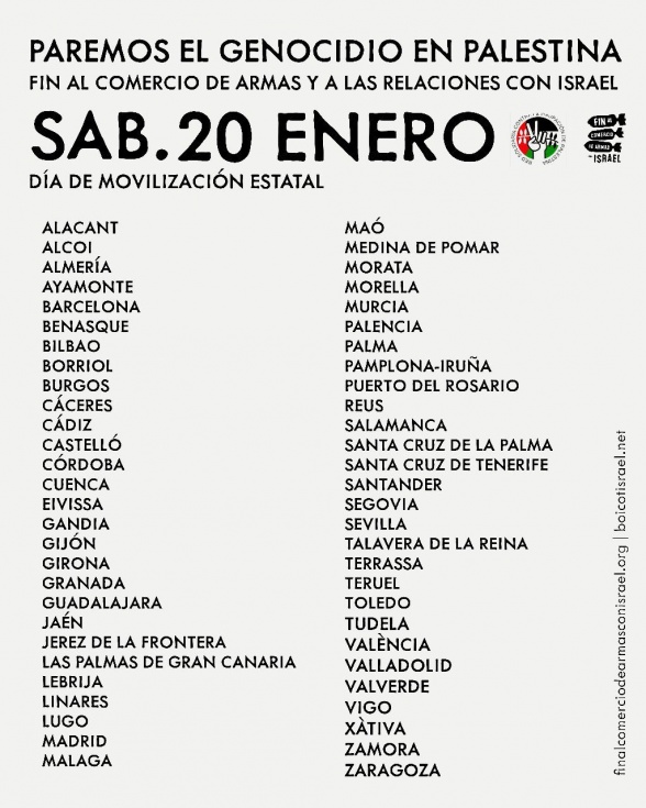El viernes 19 de enero a las 18:00 horas, la Plaza de España de Montijo será el punto de encuentro de una concentración “en contra del genocidio y en solidaridad con el pueblo palestino” promovida y organizada por varias asociaciones y colectivos del municipio que se encuadran dentro del marco de movilización estatal organizada para el sábado 20 de enero exigiendo el fin del comercio de armas y las relaciones con Israel.