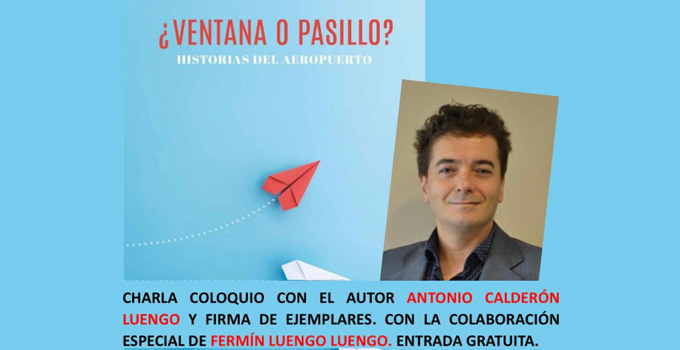 Hoy jueves 22 de febrero a las 20:00 horas se presenta en la Biblioteca Municipal de Puebla de la Calzada, el libro “¿Ventana o pasillo? Historias del aeropuerto” del autor Antonio Calderón Luengo.