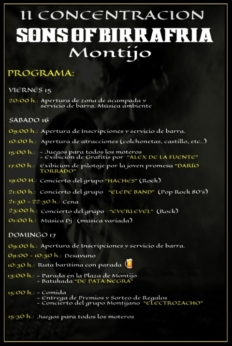 De nuevo la concentración contará con rutas en moto, conciertos, atracciones infantiles, exhibición motera, zona de acampada, barra, merchandising, etc.