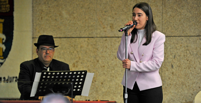 El evento contaba con la actuación musical de Claudia Abela que, acompañada al piano por el montijano Pedro Monty, que interpretaban la canción 'Ni una más', de Aitana, y el tema 'Yo no soy esa', de Mari Trini.
