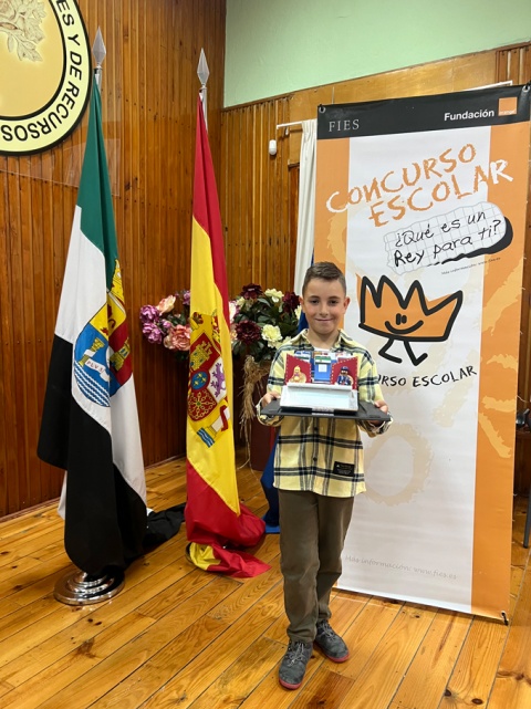 El alumno Carlos Tejado Ardilla, que cursa 4º de Primaria en el Colegio Padre Manjón, de Montijo (Badajoz), representará a la Comunidad Autónoma de Extremadura ante don Felipe en la audiencia privada que el monarca ofrecerá a los ganadores de la 43ª edición del concurso ¿Qué es un rey para ti?, promovido por la Fundación Institucional Española (FIES) y la Fundación Orange. Dicha edición corresponde al curso escolar 2023-24, en proceso actualmente.
