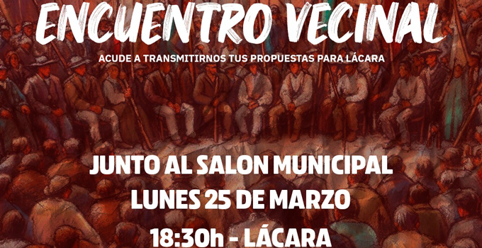 El lunes 25 de marzo a las 18:30 horas estarán en Lácara, junto al Salón Municipal, por lo que realizan un llamamiento a los vecinos del poblado que quieran trasladarse sus dudas, peticiones o ideas.
