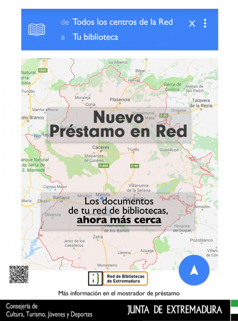 La Biblioteca Pública Municipal María Jesús Rodríguez Villa ofrece, desde el lunes 8 de abril, un nuevo servicio, el de Préstamo en Red. Gracias a este nuevo servicio, todos los usuarios de la biblioteca podrán acceder y solicitar en préstamo documentos que se encuentran disponibles en el resto de las bibliotecas de la Red de Bibliotecas de Extremadura que están acogidas a este mismo servicio, lo que posibilita el acceso a un mayor fondo de recursos.