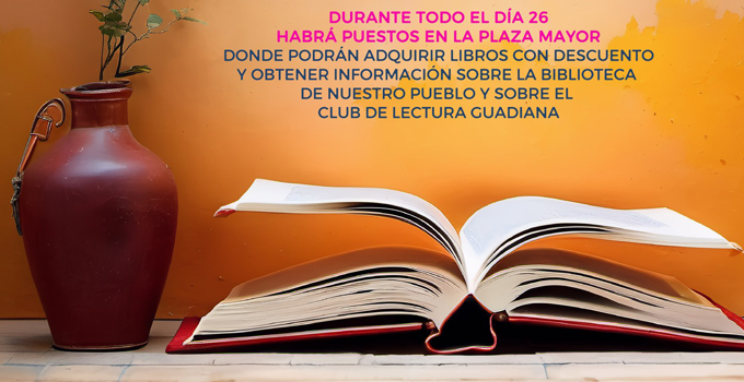 Además, durante todo ese día 26, habrá instalados puestos en la Plaza Mayor donde se podrán adquirir libros con descuento y obtener información sobre la Biblioteca Municipal y sobre el Club de Lectura Guadiana.