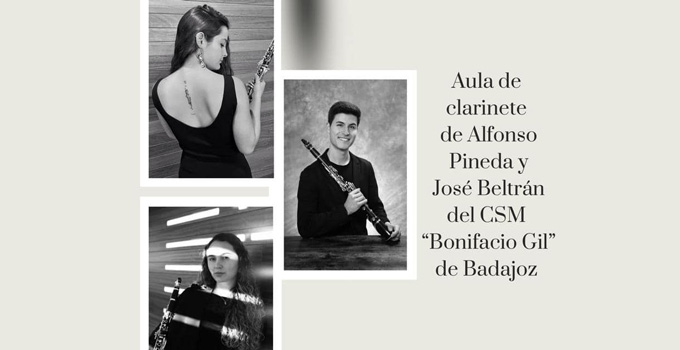 El Conservatorio Oficial de Música “Luis Gordillo”, de Montijo, ha programado un Recital del Aula de clarinete de Alfonso Pineda y José Beltrán del Conservatorio Superior de Música “Bonifacio Gil”, de Badajoz.