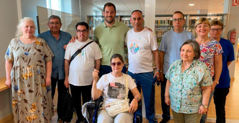 El alcalde de Montijo, Javier Cienfuegos, visitó el Club de Lectura Fácil, que se reúne periódicamente en la Biblioteca de Montijo.
