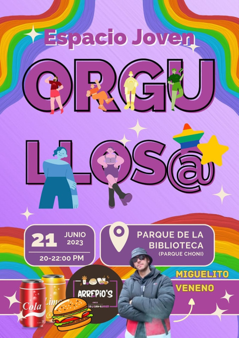 Continúa el viernes por la tarde esta celebración con actividades en el centro: Tattoo Orgullo en la Plaza de España y música en el Atrio de la Iglesia de San Pedro a cargo de Mari Pepi & Luci Bom y Otras Chicas del Montón, Drag Ilusión y el Gato con Jotas. También habrá Fiesta Dj en el Espacio Joven, con Miguelito DJ. La fiesta contará con servicio de refresco y comida.