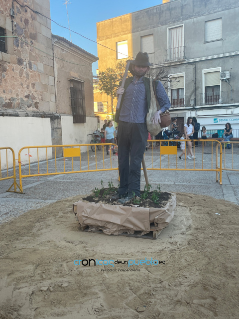 La figura de un hombre de campo. Esa fue la falla alegórica que se quemó en la tradicional Velá de San Antonio, que congregó a un gran número de montijanos en la tarde-noche del miércoles 12 de junio en el Atrio de San Pedro.