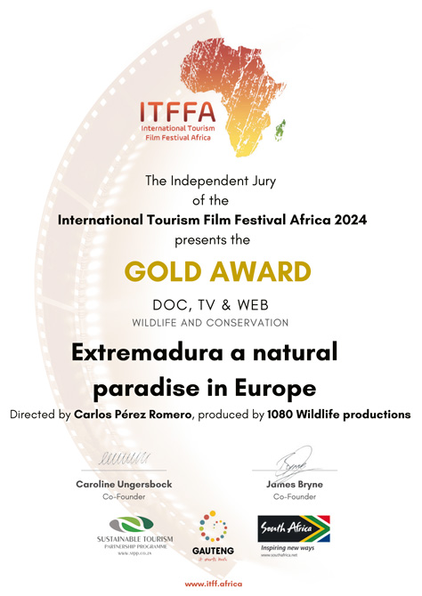 El largometraje rodado en Extremadura ha sido galardonado con el primer premio de Oro a la "Preservación de los hábitats naturales" en el Festival Internacional de Cine de Turismo de África, celebrado en Johannesburgo (Sudáfrica) del 11 al 15 de junio de 2024.