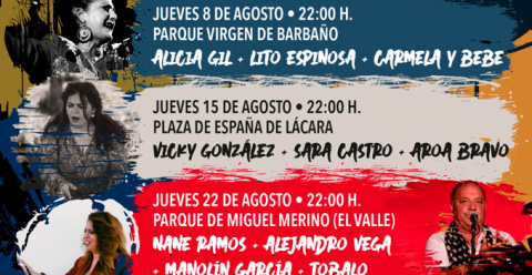 Se llevará a cabo todos los jueves de agosto a las 22 horas y la distribución de espectáculos por fecha y emplazamiento es la siguiente: