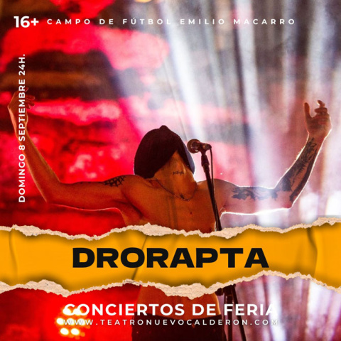 El domingo, día 8 de septiembre, nuevamente en el “Emilio Macarro” actuarán “Drorapta” y también contaremos con la fiesta de “Aurelio Gallardo” y su “Juerga Rumbera”.