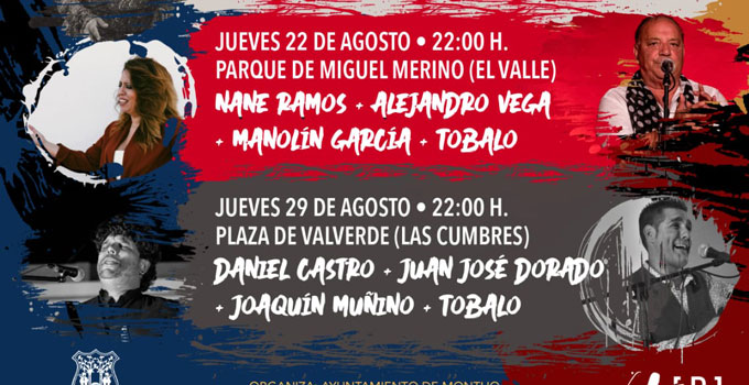 Las actuaciones, que se abrieron el pasado jueves 1 de agosto con la participación de Miguel de Tena y de Patrocinio hijo, se cierran esta semana con la actuación de Daniel Castro, Juan José Dorado, Joaquín Muñino y Tobálo en la Plaza de Valverde, en la Barriada de las Cumbres.