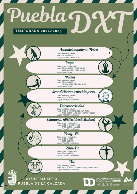 El Ayuntamiento de Puebla de la Calzada, a través de la Concejalía de Deportes, abre el plazo de matriculación para las actividades deportivas de invierno de la temporada 2024/2025 (desde el 1 octubre hasta el 19 junio).