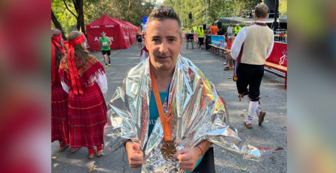El objetivo del corredor de maratones era finalizar la carrera y disfrutarla, quedando en la mejor posición posible, pero sin marcarse un objetivo específico de puesto. Y lo ha conseguido de nuevo, llegando al final de la prueba para recibir su medalla de participación y llevando la bandera de su localidad, Valdelacalzada, a la meta de la Maratón.