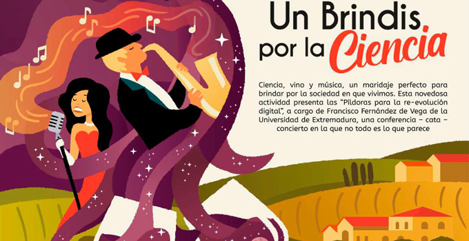“Un Brindis por la Ciencia” es un proyecto que aúna música en directo, taller de cata de los mejores vinos y mostos de la Denominación de Origen Ribera del Guadiana y píldoras científicas.