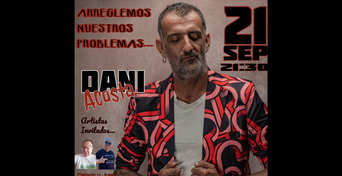 El sábado 21 de septiembre a las 21:30 horas la Casa de la Cultura contará con el espectáculo de humor “Arreglemos nuestros problemas…” del cómico sevillano Dani Acosta.