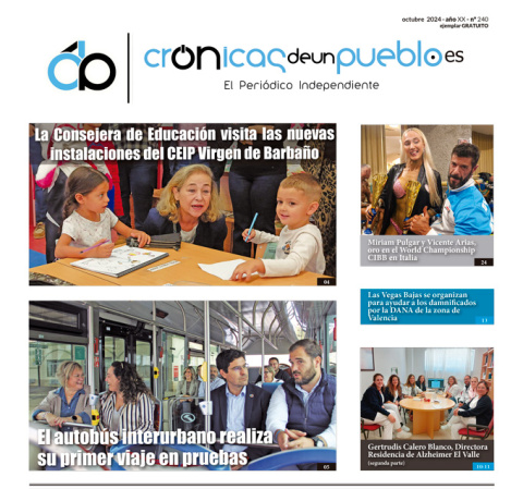 La nueva edición impresa de Crónicas de un Pueblo ya está disponible. El número 240 de la versión en papel de Crónicas de un Pueblo, en la que te llevamos el resumen de las noticias más destacadas acontecidas durante el mes de octubre, ya está disponible para sus lectores de manera gratuita.