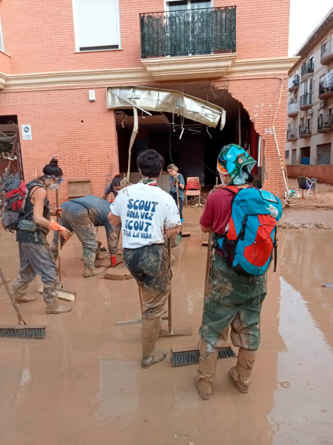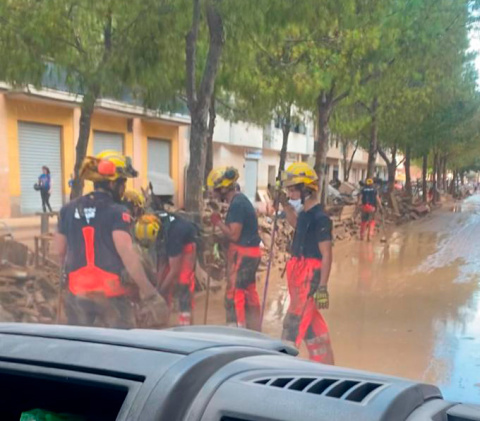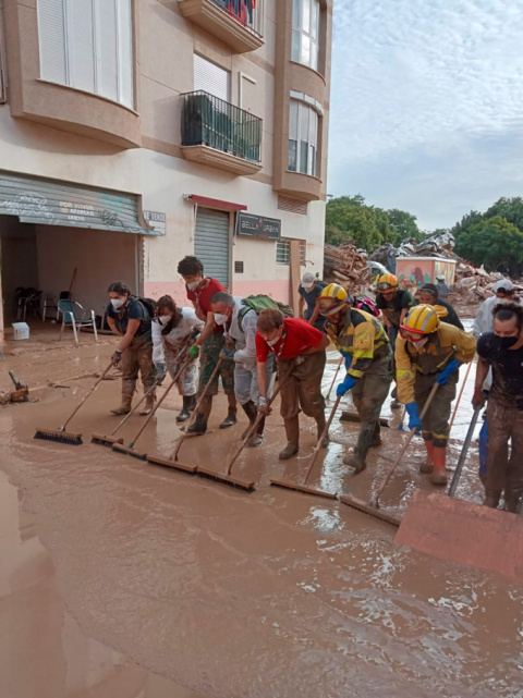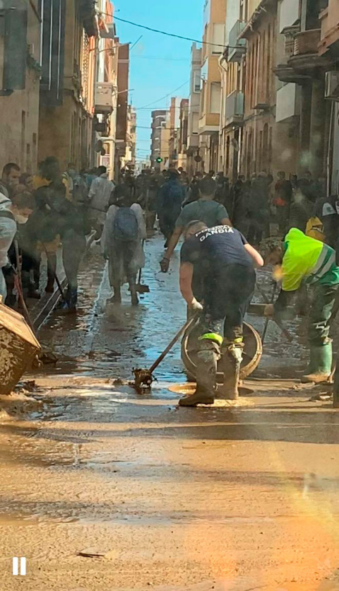 Pero no sólo agentes formados en tareas de seguridad son quienes se han remangado estos días y han ido hasta los pueblos inundados para ayudar trabajando. La llamada de los valencianos ha sido clara estos días: “hacen falta muchos brazos”. Y, conmovidos, la población en general se ha volcado ofreciendo ayuda en la medida de sus posibilidades: comida, ropa, material de limpieza e higiene, herramientas, donativos económicos… también ofreciendo sus manos y su tiempo trabajando directamente como voluntarios en la zona.