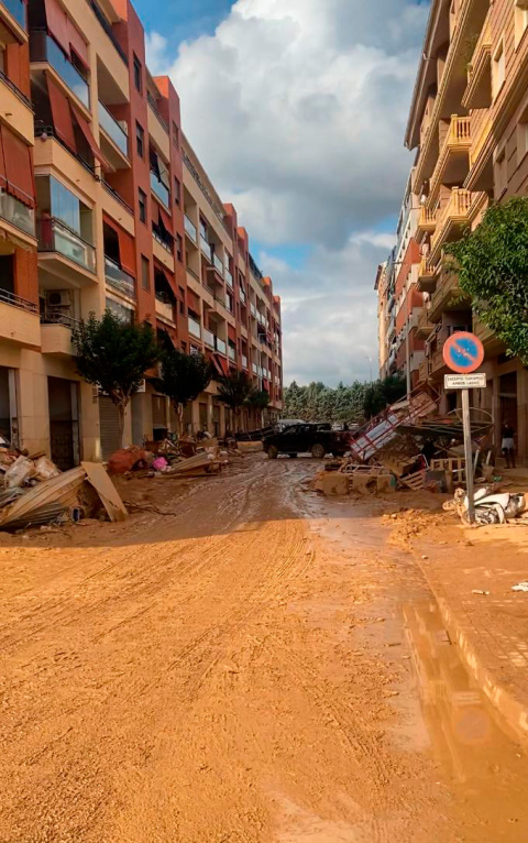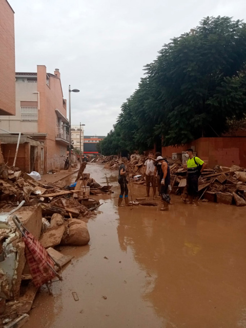 Estuvieron trabajando en distintos puntos de Valencia, en zonas con distintas necesidades, como en la zona del Raval, en Algamesí, en Benetússer, en Sedaví… donde el trabajo era “a destajo” dice. “Tenías que parar, porque si no, era imposible continuar luego”. Carmen asegura que el desastre no se entiende si no se conoce de primera mano, “es muy loco. No se puede explicar con palabras. Ni con fotos… ni con vídeos. Es muy fuerte. En las noticias no se aprecia ni un 1% de la realidad que hay allí”. Su tarea principal ha sido retirar barro de las calles y vaciar algunas zonas de garajes “a cubos”, porque las mangueras no eran capaces de succionar con la suciedad. Pone en valor el trabajo en cadena que realizaban vecinos y voluntarios, todos a una y animándose entre ellos cuando iban consiguiendo los objetivos propuestos. Anima Carmen a que quien pueda realizar tareas como voluntario acuda a hacerlo, porque “hace falta mucho allí. Esto acaba de empezar, pero hay mucho trabajo y mucha desolación”. Y lo dice con la pena de no poder estar más tiempo, porque insiste en que “cuando llegas a tu casa, ves todo tan limpio… te sientes mal de no poder regresar en ese momento y seguir ayudando”.