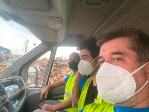 Además de realizar tareas de desescombro y limpieza, Juan y Roberto se organizaron con un familiar que disponía de una furgoneta para transportar el material que llegaba de toda España a los puntos donde paraban los camiones hasta las localidades afectadas. Pero nos cuenta que inicialmente iban dando palos de ciego: “Al principio había mucha desorganización, mucho descontrol entre los particulares, que íbamos a cualquier sitio cargados con lo que teníamos. Llevábamos una furgoneta cargada de agua, nos desplazábamos hasta un pueblo concreto y cuando llegábamos, el agua no era lo que necesitaban, porque ya estaban abastecidos. Luego ya nos fuimos organizando. Y con la llegada de la maquinaria pesada, el ejército… todo ha ido más controlado.”
