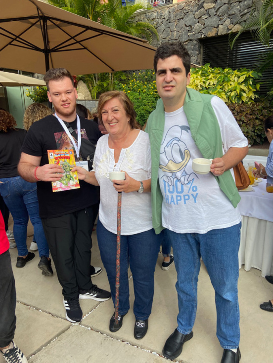 En representación del equipo de Inclusion Man, se trasladó hasta las islas Ángel Villares quien, acompañado como persona de apoyo por su compañero y monitor del taller de cómic de Plena Inclusión Montijo, Álex de la Fuente, creador de Inclusion Man, impresionó a todos explicándoles en qué consistía su trabajo de realización de un cómic adaptado a la lectura fácil y en el que los superhéroes son personas con discapacidad.