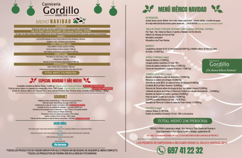 Echa un vistazo a todo lo que te ofrece Gordillo y haz tu reserva para esta Navidad.