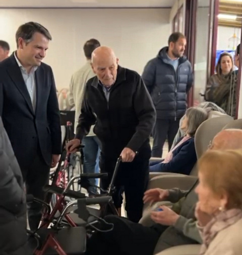 El consejero aprovechó la visita para charlar con los trabajadores y usuarios del centro residencial, interesándose por el funcionamiento del centro de reciente creación y las actividades que realizan. Junto a ellos compartió un Roscón de Reyes y pudo felicitar a Rogelio Montes Lechón, que el 8 de enero festeja su 102 cumpleaños.
