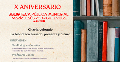 El lunes 10 de marzo se celebra el X Aniversario de la Biblioteca Pública Municipal María Jesús Rodríguez Villa y para conmemorar esta cifra redonda, se ofrecerá una charla coloquio presentada por Manuel García Cienfuegos que contará con la intervención de Blas Rodríguez González, Coordinador del Club de Lectura Fácil y exdirector del CEIP Príncipe de Asturias; Eva Álvarez Gallego, Trabajadora Social de Plena Inclusión Montijo; Isidoro Bohoyo Velázquez, Jefe del Servicio Provincial de Bibliotecas de la Diputación de Badajoz y Myriam Navas Reyes, Coordinadora del Plan Regional Fomento a la Lectura en Extremadura de la Consejería de Cultura, Turismo, Jóvenes y Deportes de la Junta de Extremadura.