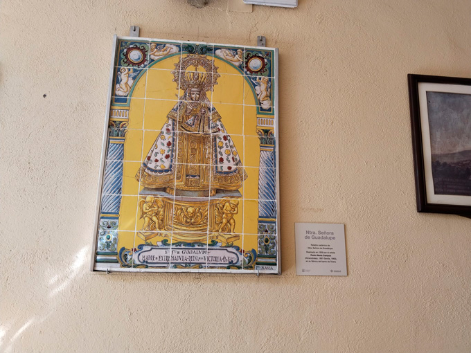 En Montijo hay al menos diez retablos cerámicos de la Virgen de Guadalupe como éste, el de la Comunidad de Labradores, Ermita de Jesús, Convento de las Clarisas y en domicilios particulares.