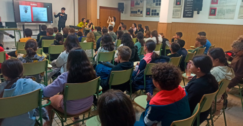 Alumnos del CEIP Príncipe de Asturias, Virgen de Barbaño, Padre Manjón, Colegio Santo Tomás de Aquino, IES Vegas Bajas, CEE Ponce de León y Plena Inclusión, asistieron a esta charla organizada desde el Departamento de Geografía e Historia del IES Extremadura. También estuvieron presentes Fernando Ayala y Juan Ceballos, Jefes de los Servicios de Memoria de la Diputación de Cáceres y Badajoz, respectivamente.