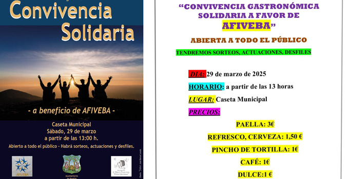El evento se hará en la Caseta Municipal, el sábado 29 de marzo a partir de las 13:00 horas.