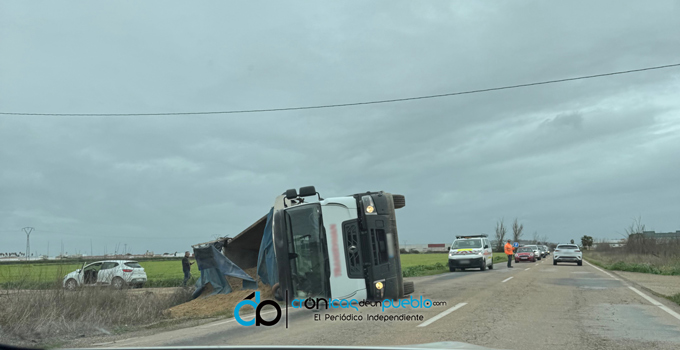 Poco antes de las 10:00 de la mañana ha volcado un camión de obra en la EX328, a la altura del kilómetro 3. El vehículo ha quedado atravesado, con la cabina en la carretera y el remolque y la carga que llevaba fuera de la misma.