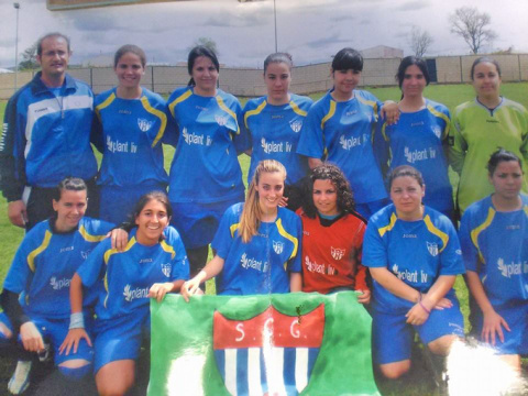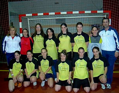 Rocío Moreno (de pié, junto a Diego Ortiz) compartiendo equipo junto a su madre, Paqui Jiménez (agachada, con el balón sobre la rodilla).