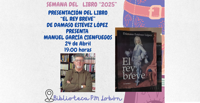 El jueves 24 de abril a las 19:00 horas, dentro de las actividades de la Semana del Libro, Dámaso Estévez presentará en la Biblioteca Municipal de Lobón su libro, "El rey breve", una presentación en la que estará acompaañdo por Manuel García Cienfuegos, Cronista Oficial de Lobón, con quien comparte amistad desde la infancia. Así que será un acto en el que se mezclarán recuerdos, amistad, historia y palabra.