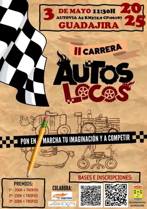 El Ayuntamiento de Guadajira ha organizado, para la celebración de las festividades del patrón local, San José Obrero, que se celebrarán entre el 30 de abril y el 4 de mayo, un amplio programa de actividades cuyos platos fuertes son la celebración de la II Carrera de Autos Locos y el concierto del integrante de Los Chunguitos, Juan Salazar.